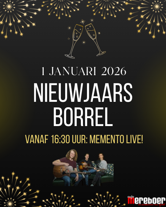 Donderdag 1 januari zijn we vanaf 13:00 uur geopend voor een feestelijke nieuwjaarsborrel! Vanaf 16:30 uur zorgt Memento voor live muziek & een gezellig sfeertje.